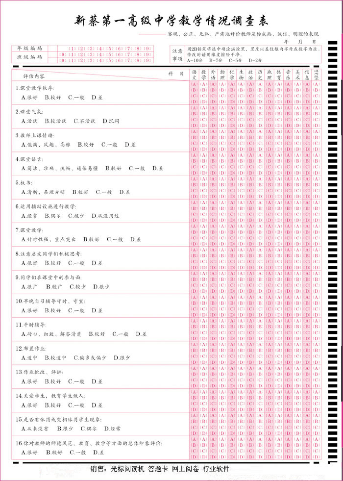 學生問卷評教卡