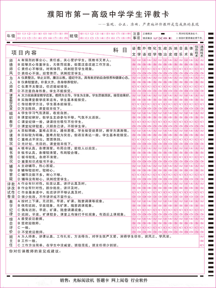 產品標題:學生評教卡