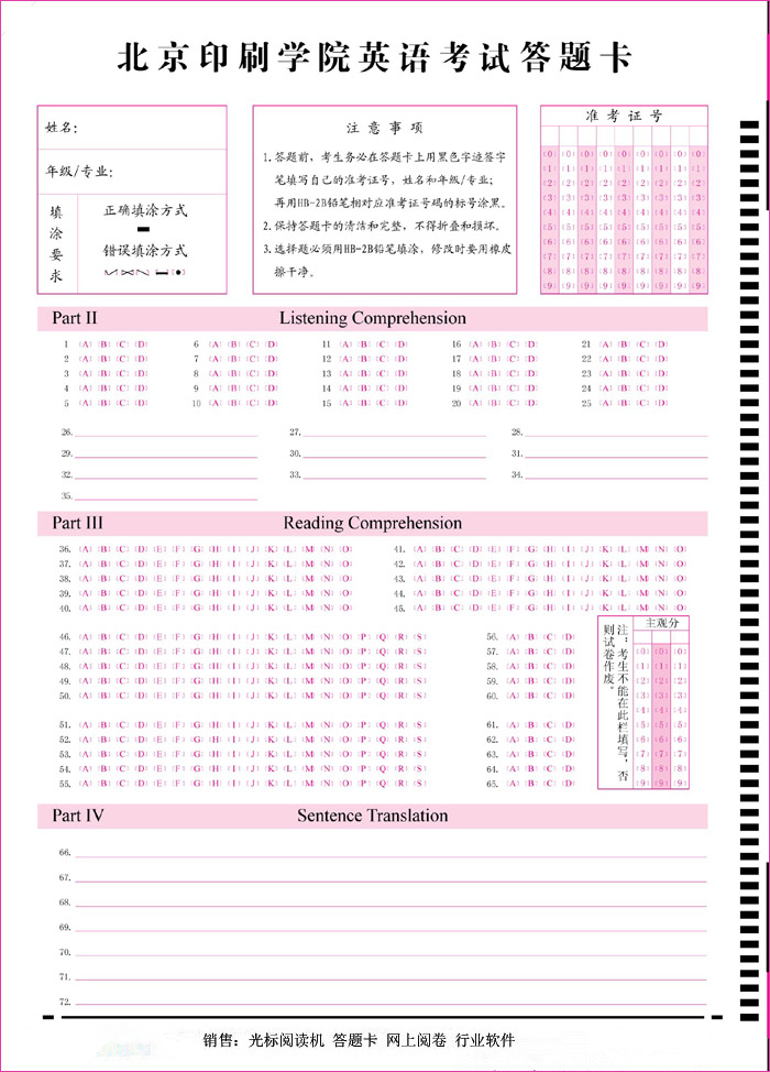 產(chǎn)品標(biāo)題:北京印刷學(xué)院英語考試答題卡