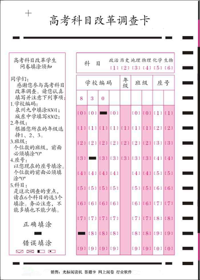 機(jī)讀卡答題卡