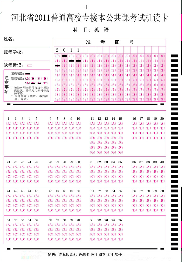 普通高校專(zhuān)接本公共課考試機(jī)讀卡