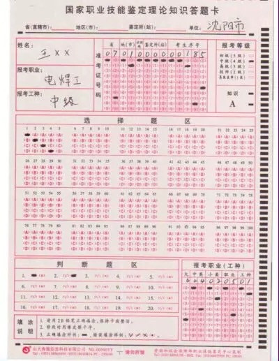 職業技能知識答題卡