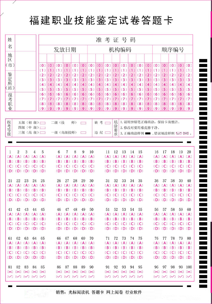產品標題:福建職業技能鑒定試卷答題卡