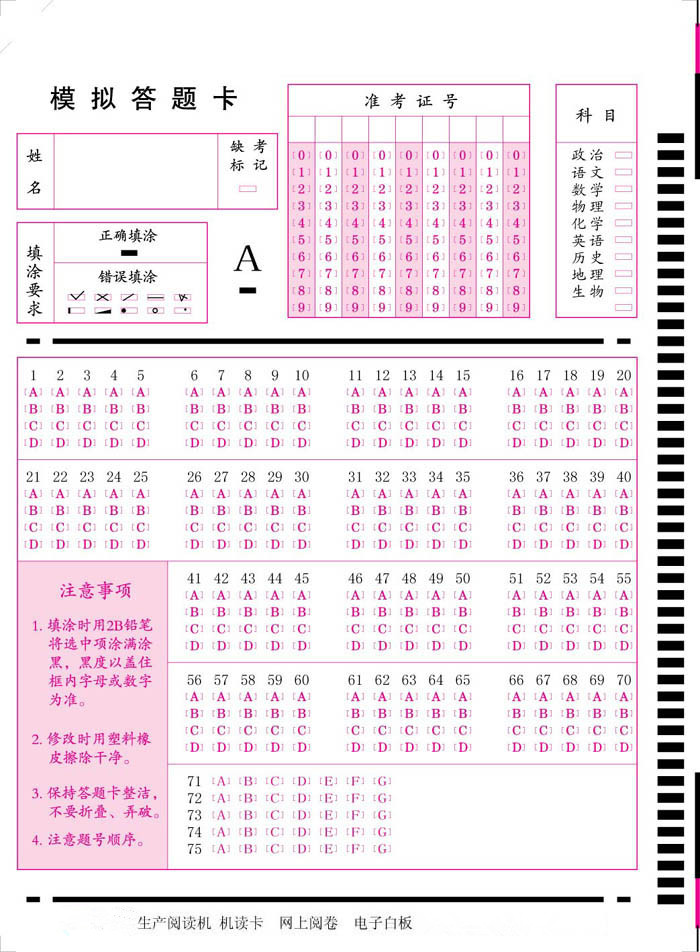 機(jī)讀卡答題卡